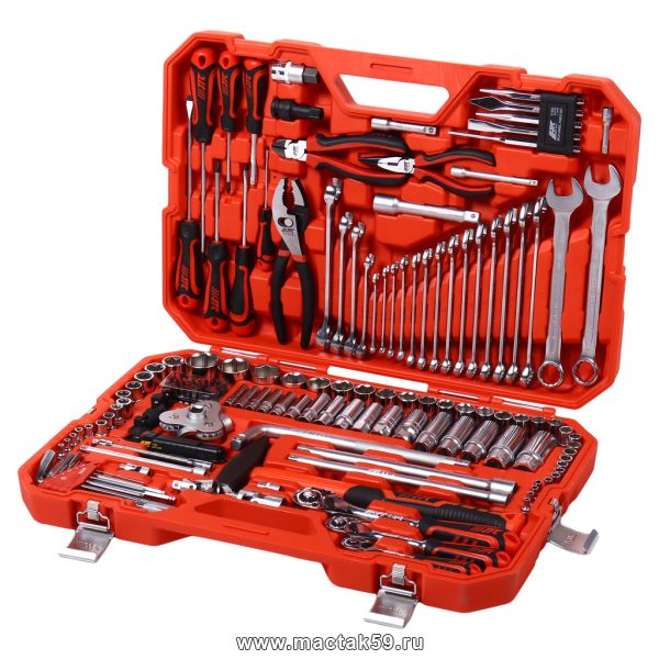Набор инструментов 166 предметов слесарно-монтажный 1/2", 3/8,1/4" 6-ти гран.в кейсе JTC