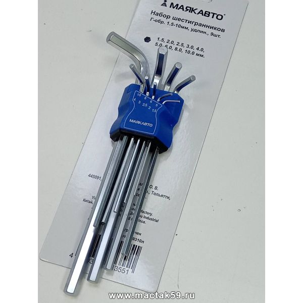 Набор шестигранников 9 штук; удлинённые Г-образные, с шаром размеры: 1,5; 2,0; 2,5; 3,0; 4,0; 5,0; 6,0; 8,0; 10,0 мм (МаякАвто,Китай)
