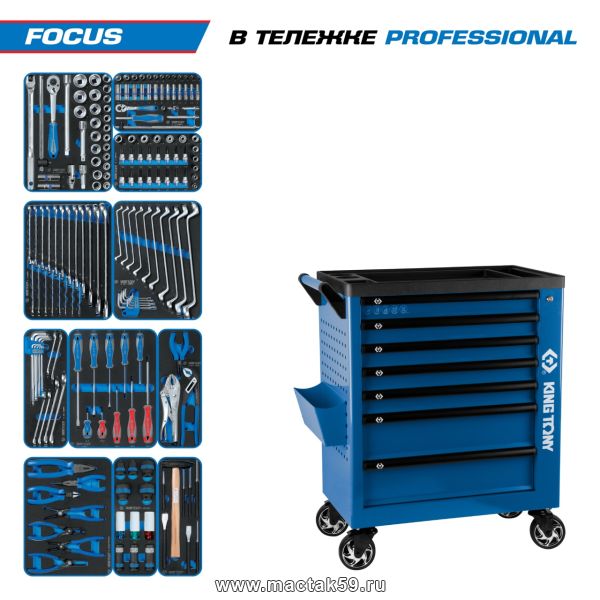 Набор инструментов 188 предметов, "FOCUS", в синей тележке