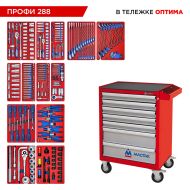 Набор инструментов 288 предметов, "ПРОФИ 288", в красной тележке