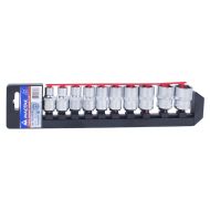 Набор головок 1/2" шестигранные размеры: 10; 12; 13; 14; 15; 17; 19; 21; 22; 24 мм на держателе профессиональный (МАСТАК,Тайвань)